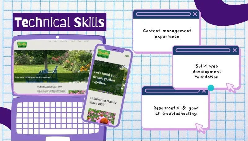 Presenting a live client-facing website allowed me to demonstrate teamwork, collaboration, and active listening. It also highlighted problem-solving, professionalism, and flexibility, as we responded in real time to client questions and feedback while showcasing our technical work.